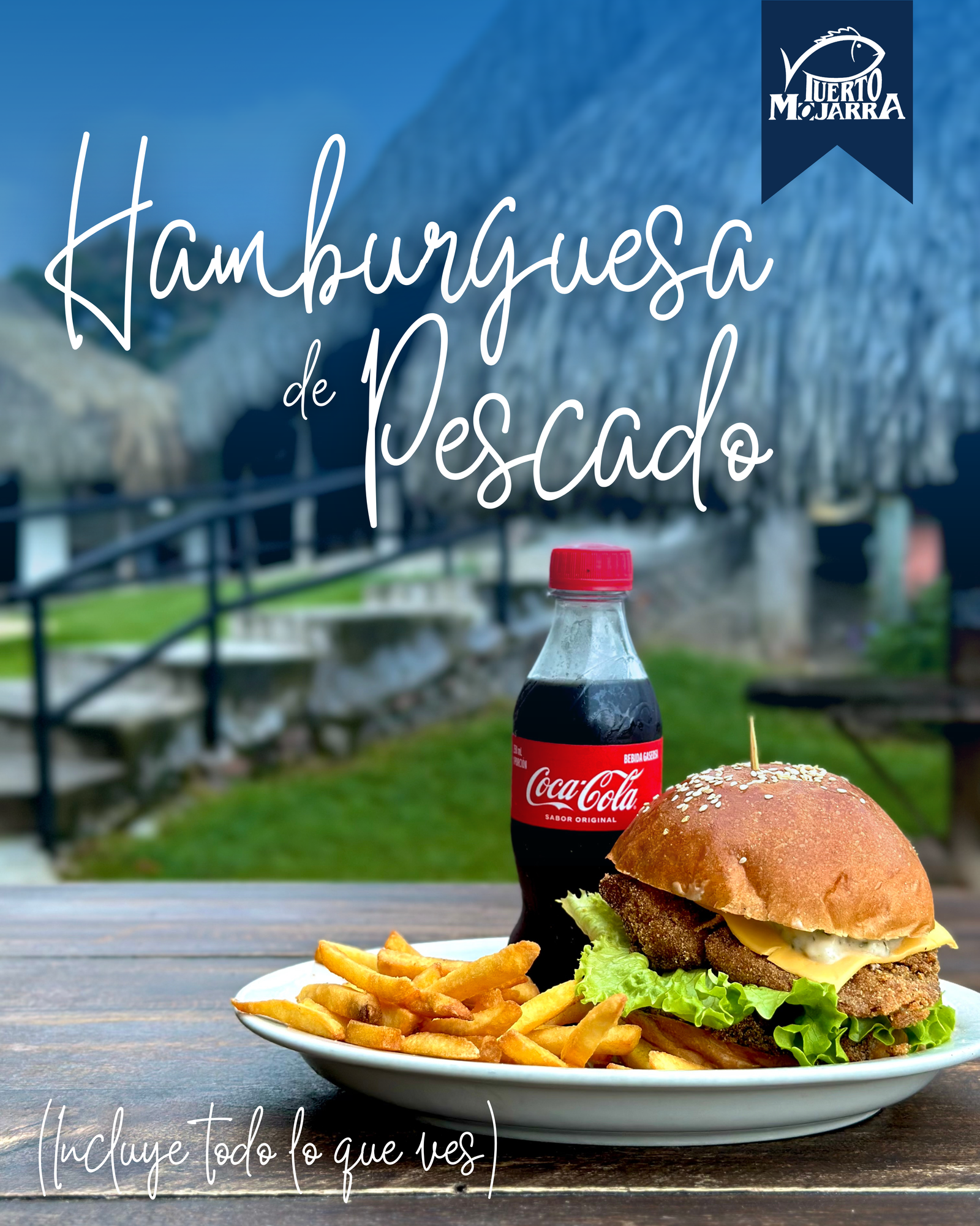 Se acompaña de papas a la francesa doradas y una Coca-Cola mini, perfecta para completar la experiencia.