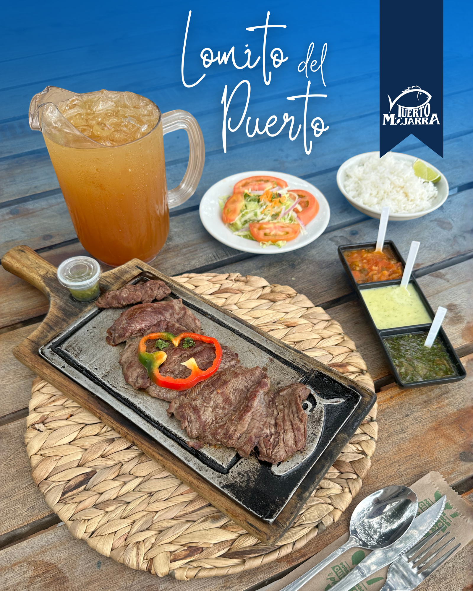 300gr de lomito fino de res, asado a la plancha para lograr una textura tierna y jugosa, resaltando el sabor natural de la carne. Se sirve con chimichurri de la casa, fresco y aromático, que aporta el equilibrio perfecto entre intensidad y frescura. Acompañado de arroz blanco y ensalada fresca de lechuga batavia, tomate, zanahoria y cilantro.