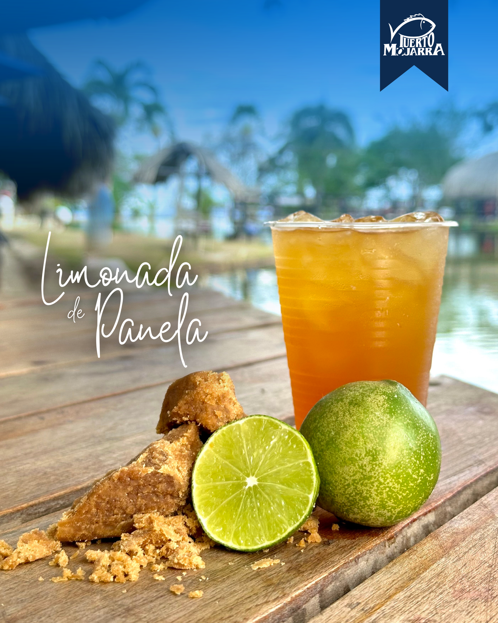 Refrescante vaso de limonada de panela preparada con panela y limón natural, hecha 100% de forma artesanal, una bebida equilibrada, tradicional y llena de frescura, ideal para compartir y acompañar cualquier plato.